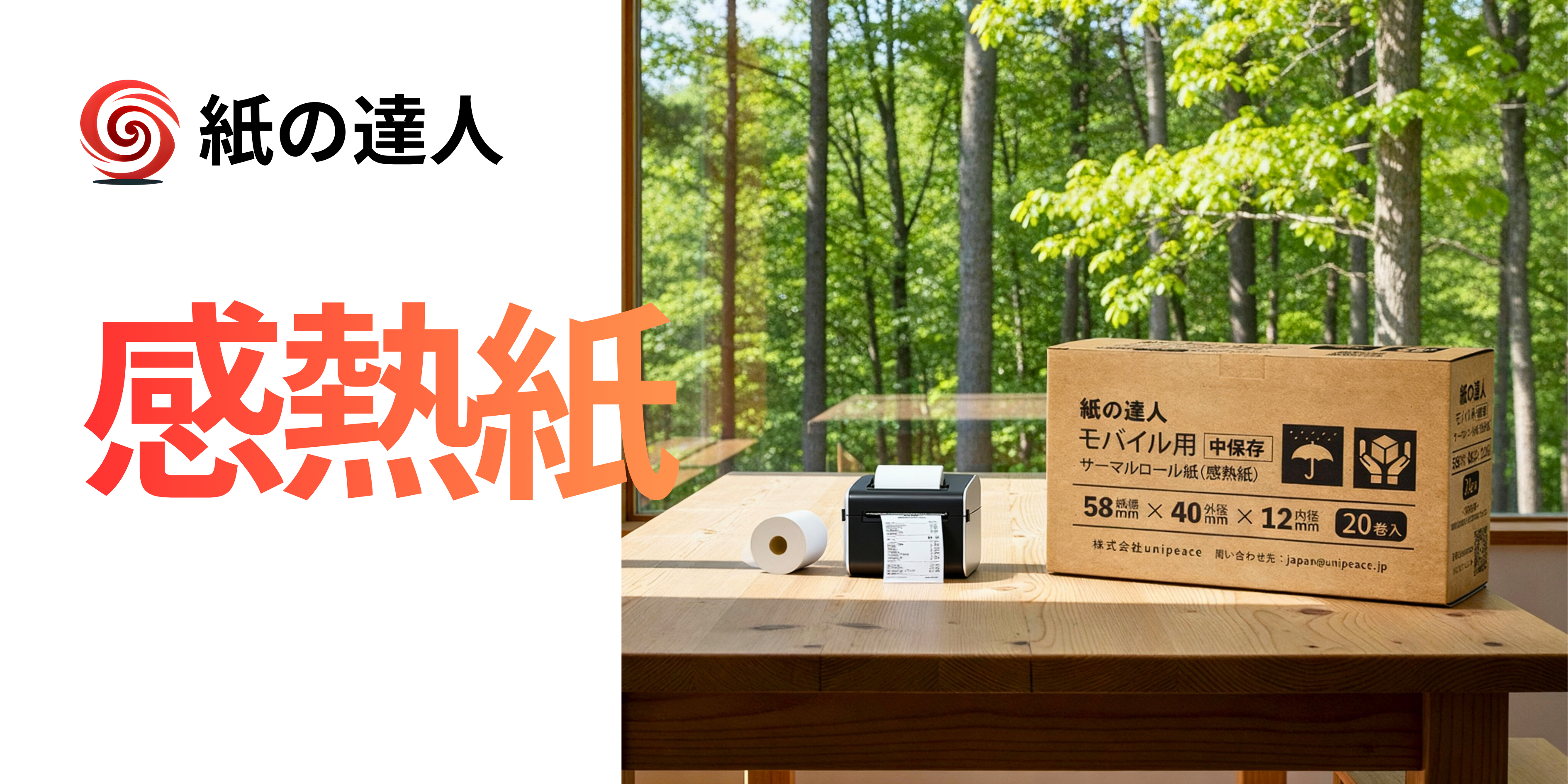 紙の達人 レジロール 感熱紙 ロール 58mm x 40mm x 12mm, モバイルプリンタ用 感熱ロール紙 (20巻)