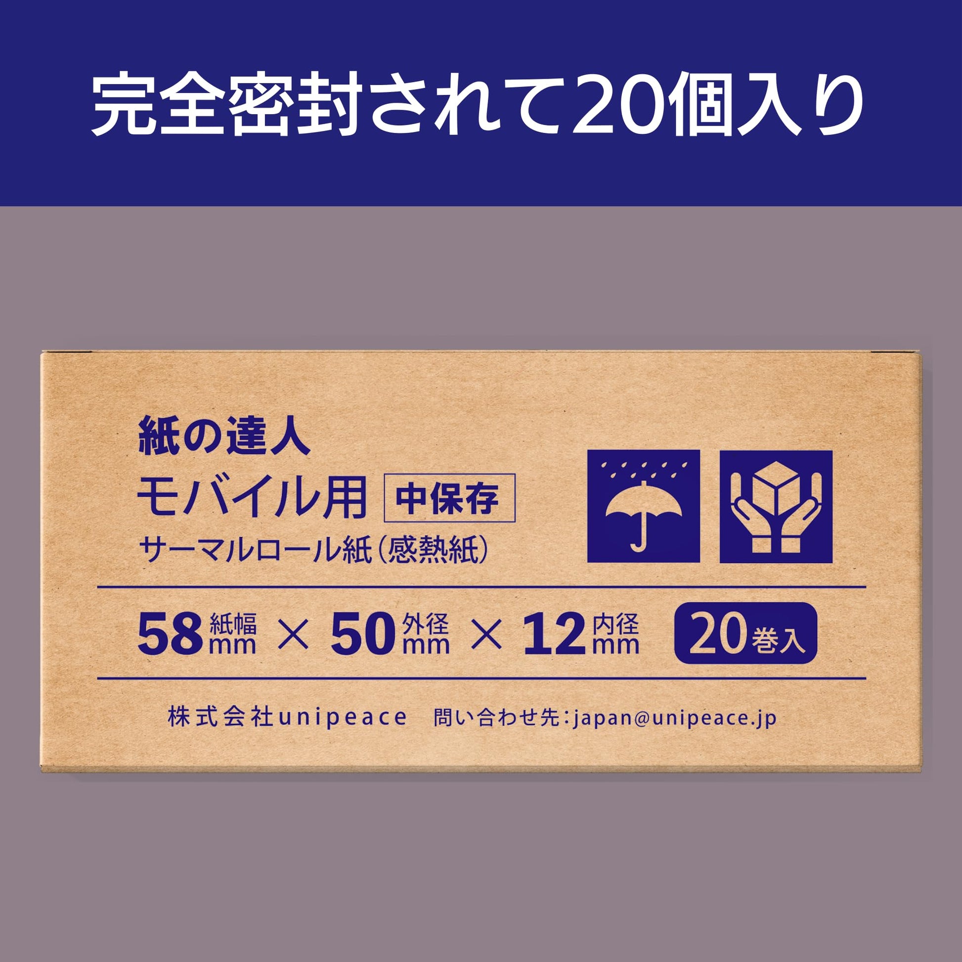 紙の達人 レジロール 感熱紙 ロール 58mm x 50mm x 12mm, モバイルプリンタ用 感熱ロール紙 (20巻)